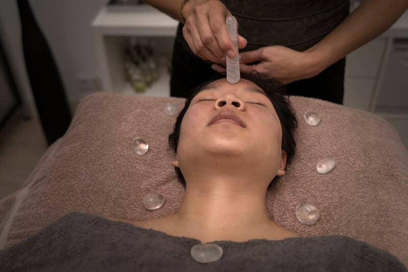 Soms door een zachte massage van gezicht, schouders of hoofd, soms door het gebruik van warme stenen, edelstenen of chakrahealing die je lichaam een gevoel van warmte en geborgenheid geven.